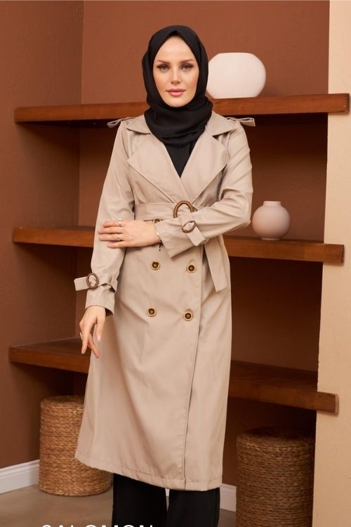 Tesettür Giyimin Favorisi Bej Trençkot