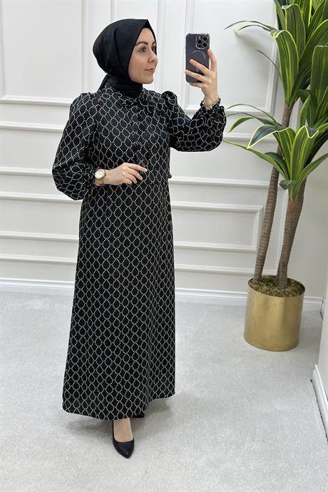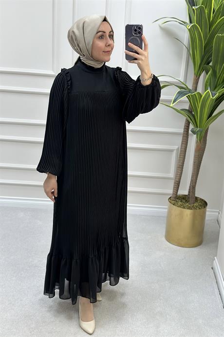Birinci sınıf kumaşlar kullanılarak tasarlanan siyah elbiseler, kalite ve konforu bir araya getirir. Uzun kesimli modeller, zarafeti ön plana çıkarırken, kısa kesimli elbiseler ise enerjik bir görünüm sunar. Dantel, işlemeler ve incilerle süslenen detaylar, siyah elbiseye sofistike bir hava katar.